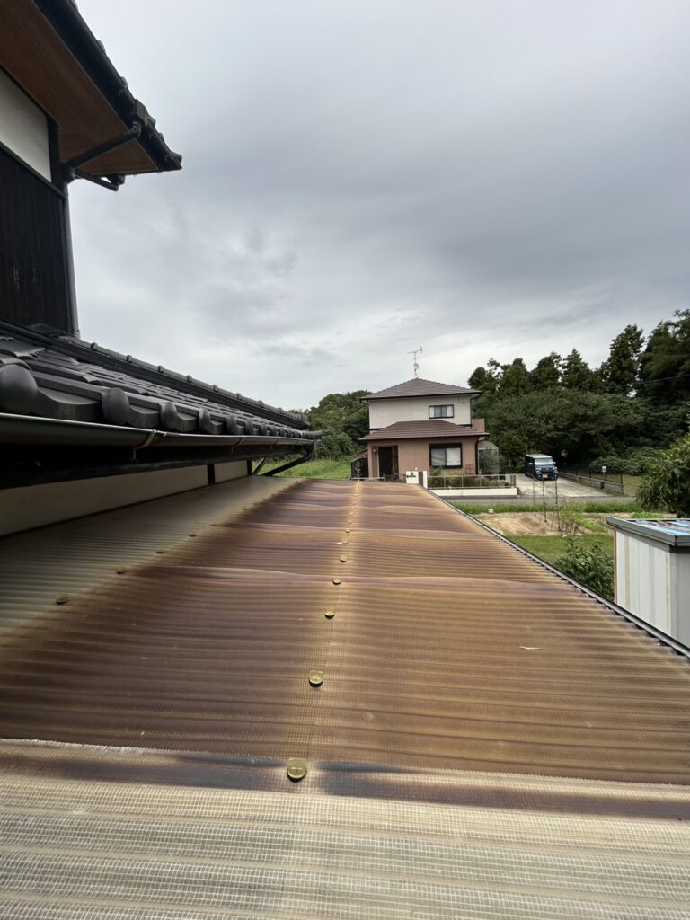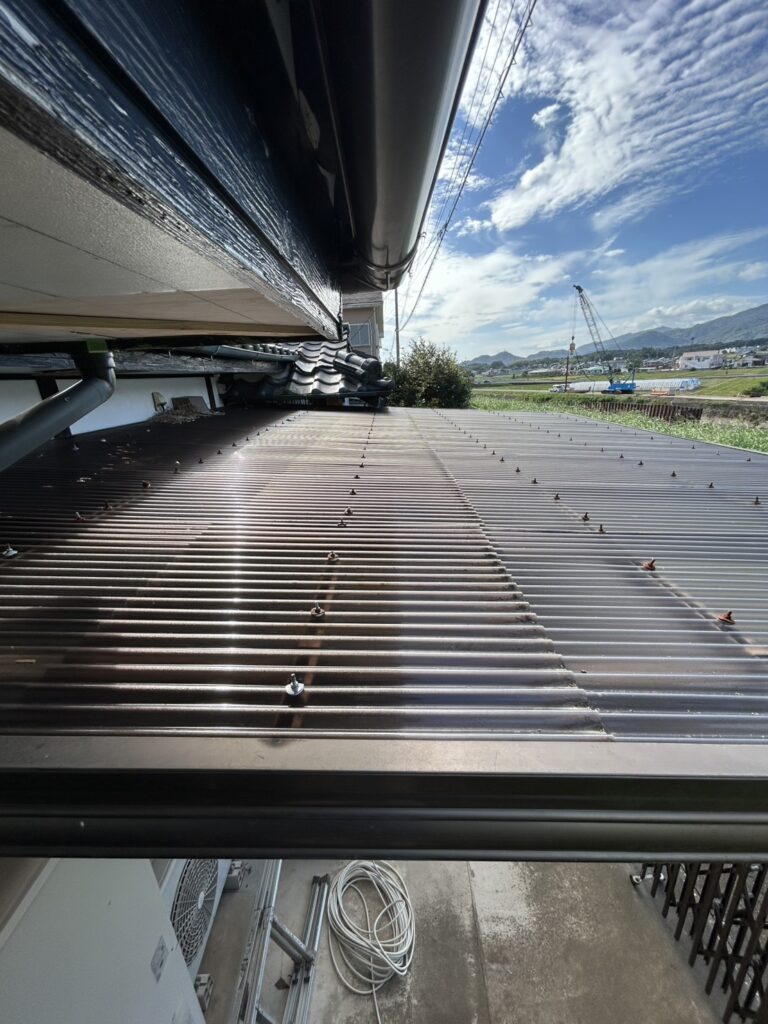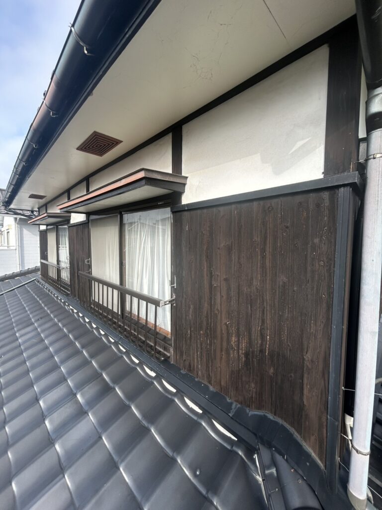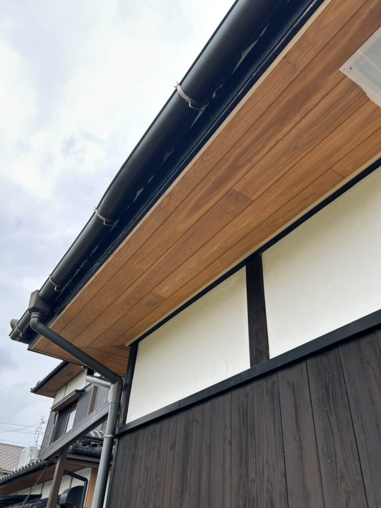 軒天は既存の白色から木を橙色に塗装した物に張替えました。