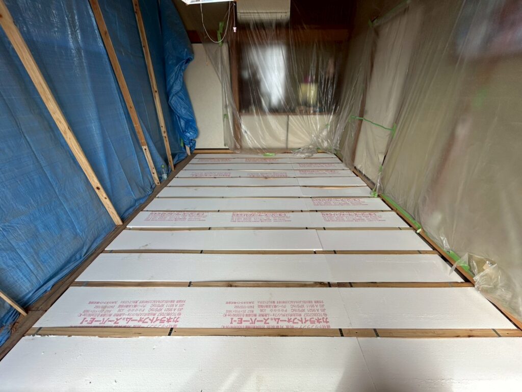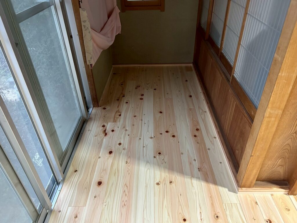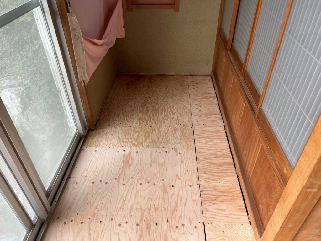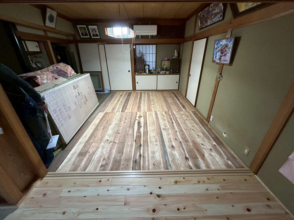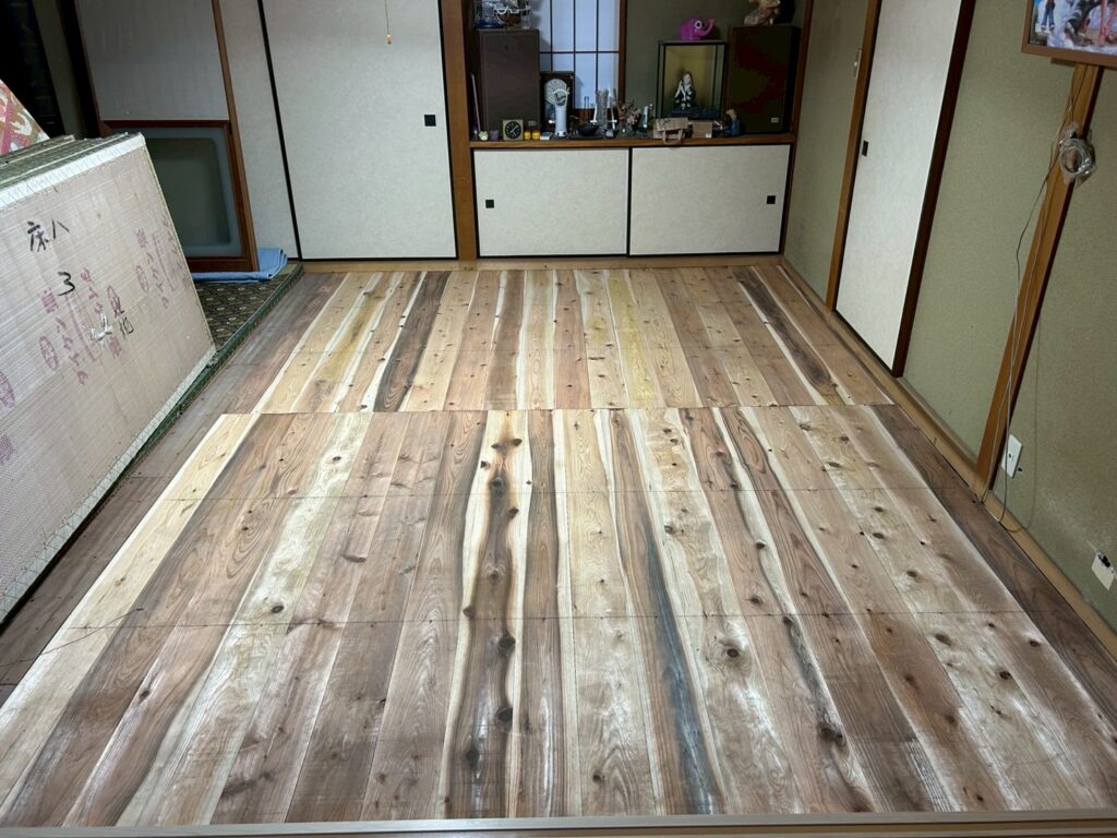 北茂安にて床張りを行いました。